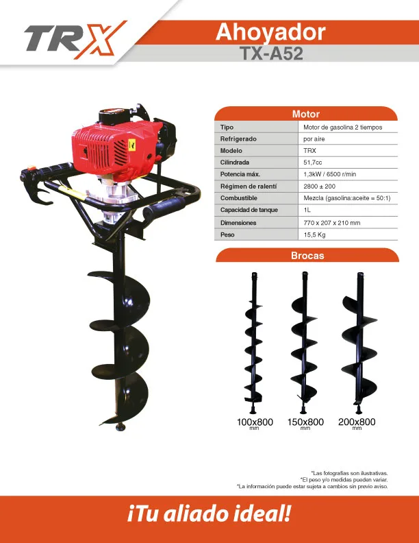 Ficha-tecnica Ahoyadora A Gasolina 1.9kW 51.7Cc TRX TXA52Ahoyadora A Gasolina 1.9kW 51.7Cc TRX TXA52