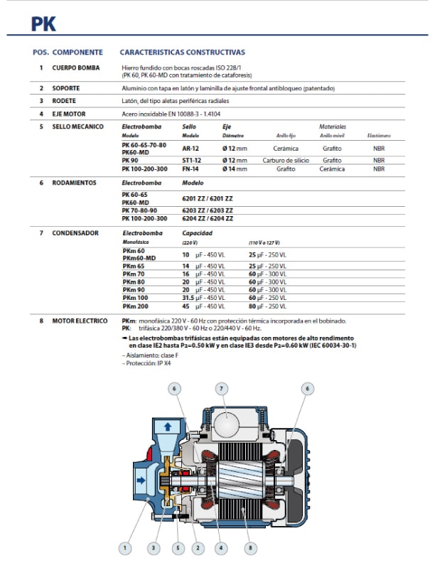 | Material sello mecánico | Cerámica, grafito, NBR |