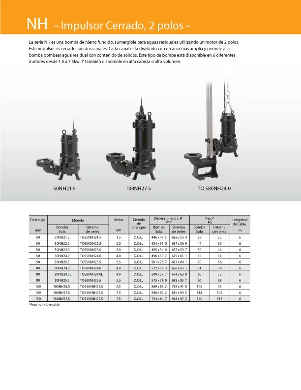 FICHA-TECNICA Electrobomba Sumergible 4Hp 220/440V Tsurumi 50NH23.0