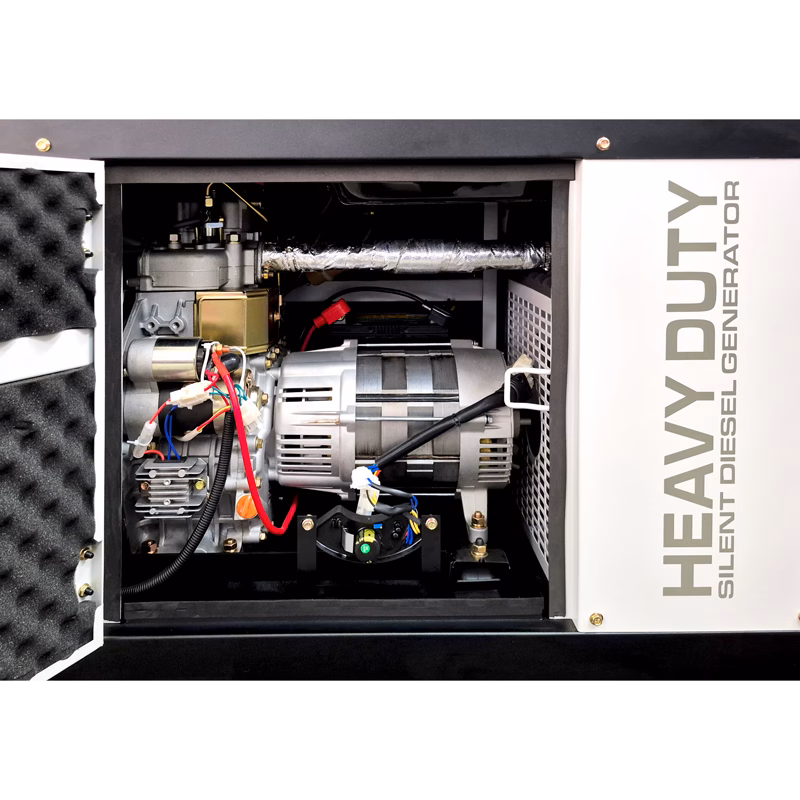 La VDC8700-3P está equipada con un motor VOLK 192FE de 4 tiempos, diésel y enfriado por aire, diseñado para trabajar a 3600 rpm con eficiencia y durabilidad. Su tanque de 16 litros proporciona autonomía prolongada, ideal para jornadas laborales o emergencias. Además, cuenta con arranque eléctrico con batería y un sistema de protección IP23M que garantiza seguridad en su operación.